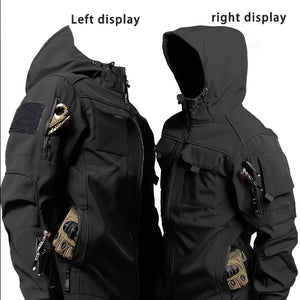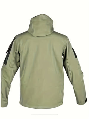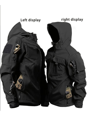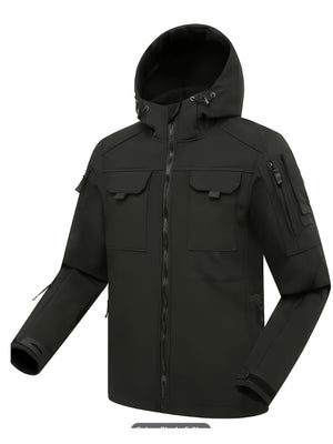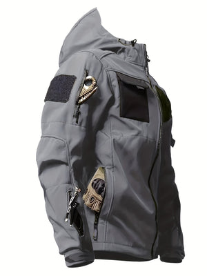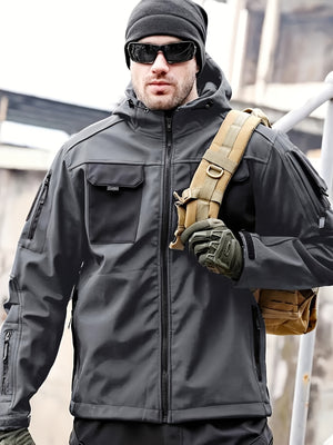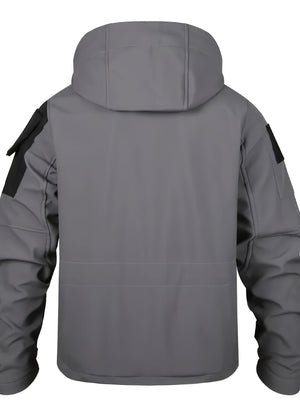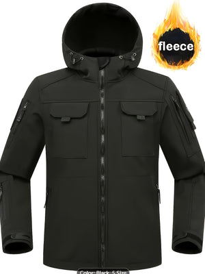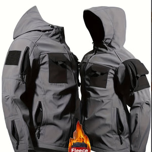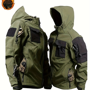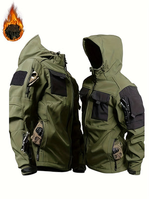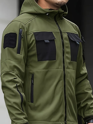Stilvolle taktische Kapuzenjacke im Farbblockdesign für Herren – Winddichter, mit Fleece gefütterter, wasserabweisender Outdoor-Mantel